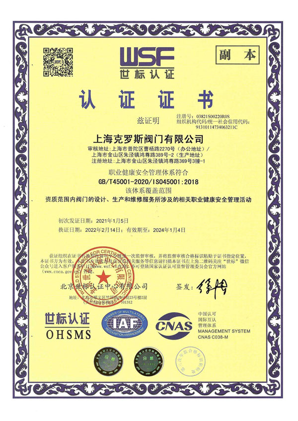 特種設備試驗證 克羅斯閥門質(zhì)量管理(中文) 克羅斯閥門質(zhì)量管理(英文) 職業(yè)健康安全管理(中文)
